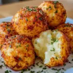 Crispy on the outside and creamy on the inside, these cheesy mashed potato balls are a perfect snack or side dish.