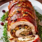The sun dips low on the horizon, painting the kitchen in warm hues of gold as the aroma of roasted pork fills the air. The enticing scent wafts gently, revealing layers of savory goodness wrapped in perfectly roasted tenderness. Imagine slicing into a beautiful, succulent pork loin roll, only to discover a treasure trove of flavors within—crisp bits of smoky bacon mingling with sweet, caramelized apples, vibrant spinach, and tart cranberries. Each bite unfolds a story, transporting your taste buds into a world of warmth and comfort, where every ingredient sings in delightful harmony.