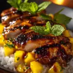 A warm and inviting dish featuring tender chicken glazed with a luscious mango sauce for a perfect blend of sweet and savory.