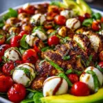 Nothing stirs the soul quite like the delightful scent of chicken marinating, mingling with spices and rich balsamic vinegar, while an inviting crunch from freshly chopped veggies beckons at every turn. The very thought of a Baked Marinated Chicken Salad with Mozzarella and Balsamic Vinaigrette paints a picture of casual elegance—a dish that offers comfort and sophistication all in one glorious bowl. Imagine succulent chicken, baked to perfection, gently enveloped in a luscious medley of creamy mozzarella, creamy avocado, and juicy cherry tomatoes, all resting over a bed of vibrant baby spinach. Each forkful delivers a symphony of textures and flavors that dances on the palate, leaving a trail of satisfaction and joy.