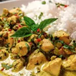 As you savor this dish, notice the decadent layers of flavor unfolding in your mouth—the nutty aroma of coconut milk, the fresh garden tones of basil, and the savory depths brought in by the combination of spices. This isn’t just a meal; it’s an immersive experience filled with comfort and warmth, perfect for an intimate dinner or a lively family gathering. The spices harmonize beautifully with the tender chicken, creating a symphony of flavor that is as inviting as your favorite childhood dish but with an exotic twist that will have everyone asking for seconds.