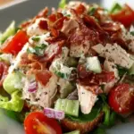 A light and flavorful BLT Chicken Salad that combines crispy bacon, juicy chicken, and fresh vegetables for a satisfying meal.