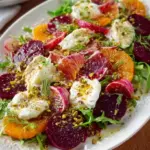 Imagine biting into a salad that vibrates with colorful freshness, where the luscious creaminess of burrata mingles with the sweet earthiness of roasted beets, punctuated by the bright zing of citrus. Each forkful reveals layers of taste that dance harmoniously across your palate, leaving you craving more. The vibrant hues of ruby red beets and sunny citrus illuminate your plate, evoking a sense of joy that goes beyond mere sustenance—it’s a celebration for the senses. As you pick up the salad, your fingers notice the coolness of the arugula, the crunch of pistachios, and the glossy sheen of the homemade dressing, all brimming with a promise of delightful flavor.