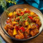 Step into a culinary romance that captivates your senses with every bite. Imagine succulent pieces of chicken lightly kissed by the sizzle of hot oil, their exterior cradling a delicate crunch that gives way to tender, juicy meat within. The aroma rises, weaving together the fragrant garlic and ginger, transporting you to a vibrant street market in China, where every dish tells a story. Across the pan, ribbons of green chilis and colorful bell peppers burst into vibrant hues, promising a beautiful dance of flavors that excites the taste buds. Finally, as the magic unfolds, the golden sweetness of ripe mango mingles with savory sauces, creating a symphony that is as delightful to behold as it is to savor.