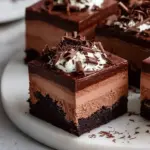 The versatility of these brownies makes them perfect for a host of occasions. Whether you’re celebrating a birthday, hosting a dinner party, or simply indulging on a cozy night in, these brownies impress and enchant. They stand out not just for their divine taste but also for their show-stopping presentation—glistening mousse topped with chocolate shavings. This dessert has the power to turn an ordinary day into a special occasion.