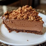 A delicious and decadent chocolate mousse pie topped with a crunchy layer, perfect for dessert lovers.
