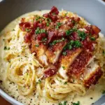 This creamy carbonara with crispy chicken and bacon stands out not just for its incredible taste but also for its versatility. Whether it’s a cozy weeknight dinner or an impressive dish for entertaining guests, it adapts seamlessly to any occasion. The creamy sauce mingles beautifully with the smoky bacon and tender chicken, lending a rich depth of flavor that leaves you craving more with every bite.