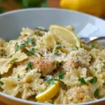 A delicious and comforting creamy lemon chicken pasta that blends juicy chicken and bowtie pasta in a creamy lemon sauce, perfect for any gathering.