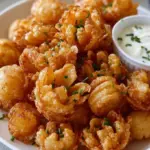 Delightful crispy mini bloomin’ onions served with a tangy buttermilk ranch dip, perfect for gatherings and snacks.
