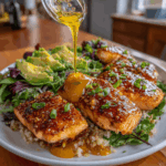 While the salmon is cooking, grab a bowl and start layering. Begin with a scoop of cooked rice as your base. Then, add a handful of mixed greens for freshness. Finally, place some sliced avocado on top. This colorful presentation is not just pretty; it’s also packed with nutrients!