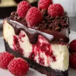 The joy of serving this decadent dessert is indescribable. Colors blend beautifully in the cheesecake, with the glossy dark chocolate mingling with the ruby red of the raspberries. The moment you slice into it, the silky filling glides effortlessly out, showcasing the effortless elegance of this masterpiece. Each mouthful brings together the unique essences of sweet and tart; it’s a dessert that knows how to sing in harmony. It transforms any ordinary occasion into something extraordinarily memorable—whether shared at a birthday celebration, a cozy holiday gathering, or a just-because moment.