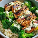 Indulge in the culinary delight of Grilled Chicken & Broccoli Bowls with Creamy Garlic Sauce. Picture this: succulent, char-grilled chicken, its smoky aroma wafting through the air, harmoniously complemented by tender, vibrant broccoli florets bursting with freshness. Each bite presents a delightful contrast—the juicy, savory chicken meets the crunch of perfectly steamed broccoli—the kind that snaps satisfyingly under your teeth, radiating a fresh flavor that enhances the whole experience. Atop this colorful symphony rests a luxurious, velvety garlic sauce that oozes richness and complements every element on your plate, beckoning you to take just one more bite.