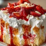 This cake encapsulates everything that dessert should be: indulgent yet light, rich in flavor yet refreshing. Perfectly suited for warm days or festive gatherings, it stands out with its delightful balance of creamy and fruity elements. The fluffy angel food cake forms a pillowy base that absorbs the sweet strawberry filling, while the cream cheese and whipped topping bring a silky richness that elevates the humble dessert to heavenly heights.