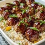 There’s something undeniably comforting about a bubbling dish fresh from the oven, the aromas wafting through the air, promising delight in every bite. Imagine succulent meatballs coated in a glossy, golden glaze, their rich flavors of honey and garlic enveloping your senses. The anticipation builds as you catch a whiff of the sweet and savory blend, mingling with the earthy notes of perfectly cooked rice. Each spoonful offers a delightful contrast—tender, juicy meatballs nestled among fluffy rice and vibrant vegetables, inviting you to dive in. This is more than just a meal; it’s an experience that wraps you in warmth, soothed by familiarity and yet excited by every flavor.