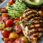 Assemble and Serve: After grilling, allow the chicken to rest for a few moments to lock in the juices. Then slice it and generously top with creamy avocado and vibrant tomatoes before serving.