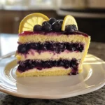 A delightful and refreshing layered cake featuring zesty lemon and sweet blueberries, perfect for any occasion.