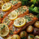 Serve: On a plate, arrange the crispy potatoes and roasted broccoli beside the salmon. Generously spoon that luscious lemon butter sauce over the fillets. Finish with fresh lemon slices and a sprinkle of parsley for that restaurant-quality presentation.