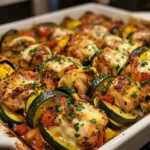 Now, it’s time to bake! Place the dish in your preheated oven and let it cook for 25-30 minutes. To check for doneness, make sure the chicken is no longer pink in the center and the zucchinis are tender. You can use a meat thermometer; the chicken should reach an internal temperature of 165°F (75°C). Your kitchen will smell heavenly during this time!