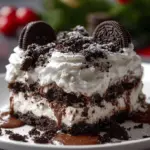 Picture this: the first slice reveals a stunning contrast between the deep chocolate hues and creamy whites, the luscious layers inviting you in for more. The moment a fork pierces through the layers, you hear the soft crunch of the Oreo crust, a prelude to the delicious symphony of flavors that follows. Classic Oreos create a familiar, comforting base, while a fluffy cream cheese mixture introduces a rich, tangy note that perfectly balances the sweetness of the decadent chocolate pudding. Each bite is a sumptuous dance of creaminess, crunch, and nostalgia, encapsulating everything magical about holiday celebrations.