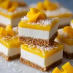 Store your No Bake Coconut Mango Cheesecake Bars in an airtight container in the fridge for up to a week. To keep them fresh, consider placing parchment paper between layers if stacking. For longer storage, these bars freeze beautifully. Cut them into squares and wrap each piece individually in plastic wrap before placing them in a freezer-safe container. They last for about 2-3 months. To enjoy, simply thaw them in the refrigerator overnight.