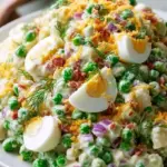 Old Fashioned Pea Salad reigns supreme as a quintessential crowd-pleaser, perfect for every occasion, whether it’s a summer barbecue, a festive holiday gathering, or a potluck with friends. The beauty of this dish lies not only in its taste but also in its stunning visual appeal; the vivid green of peas, the sunny yellow of cheddar cheese, and the crisp red of onions create a feast for the eyes before the first taste even graces your lips.