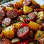The delectable aroma of sizzling kielbasa dances through the air, mingling with the hearty scent of golden-brown potatoes and vibrant bell peppers. As you walk into the kitchen, anticipation fills every corner, teasing your taste buds with promises of a dish that’s not only comforting but also packed with flavor. When you pull the tray out of the oven, the glistening slices of sausage sit alongside perfectly roasted potatoes, their edges crisped to perfection, and the colors of the vegetables pop like a summer garden, inviting you to dive right in.