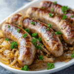 As a busy mom, I know how challenging it can be to whip up a meal that pleases everyone. That’s why I adore my Oven Braised Beer Brats with Caramelized Onions. This dish is not just a quick solution for a hectic day; it’s a hearty meal that brings smiles to the dinner table. The rich flavors of the bratwurst, combined with the sweetness of caramelized onions, create a comforting experience. Plus, it’s easy to prepare, making it perfect for those evenings when you want to impress your loved ones without spending hours in the kitchen.