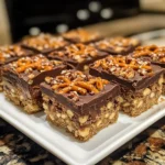 Peanut Butter Chocolate Pretzel Bars are a delightful combination of sweet and salty flavors, featuring a crunchy pretzel base topped with creamy peanut butter and rich chocolate.