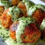 Delicious golden, crispy salmon balls served with a creamy avocado sauce, perfect for lunches or gatherings.