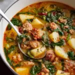 A hearty and comforting soup featuring savory sausage, tender potatoes, and vibrant spinach, perfect for chilly evenings.