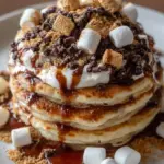 Indulge your senses and take a stroll down memory lane with these delightful S’mores Pancakes. Imagine waking up on a bright Sunday morning, sunlight streaming through the kitchen window as the aroma of freshly cooked pancakes wafts through the air. The sweet scent of vanilla mingles with chocolate and the rich toastiness of graham crackers, instantly transporting you to a summer campfire. Each fluffy stack, dotted with melty chocolate and playful puffed marshmallows, promises an experience that goes beyond breakfast—it’s a taste of nostalgia and warmth.