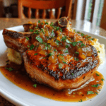 Finally, it’s time to serve! Plate the pork chops and generously spoon the rich gravy over them. For a pop of color, garnish with fresh parsley. This dish is best enjoyed with a side of mashed potatoes or rice to soak up all that delicious gravy!