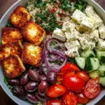 Imagine a bowl bursting with fresh, vibrant colors and tantalizing textures that beckon you to dive in. The aroma of crispy, golden halloumi mingles with the bright bursts of juicy cherry tomatoes and the cool crunch of crisp cucumber. With each forkful, you experience an explosion of flavors—from the saltiness of olives to the herbaceous notes of fresh parsley, all tied together with a drizzle of zesty lemon dressing. This is not just a meal; it’s a celebration of Mediterranean goodness that nourishes both body and soul.
