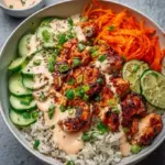 Indulging in a delicious meal can be one of life’s greatest pleasures. Picture the moment when you take your first bite of a Spicy Chicken Bowl with Creamy Sauce—the aroma of savory spices mixing with tender chicken instantly fills the air, igniting your senses. Each mouthful reveals a symphony of flavors, from the perfectly balanced heat of Sriracha to the silky smoothness of creamy mayonnaise. The vibrant crunch of fresh cucumbers and the sweet snap of carrots add a delightful contrast to the succulent chicken over a bed of fluffy basmati rice. As the creaminess envelops everything, you find yourself lost in the experience, savoring every last bite. It’s not just a meal; it’s a journey of flavor and texture.