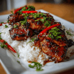 Now comes the best part—serving! Fluff the coconut rice with a fork and place a generous scoop on each plate. Top it with the spicy maple chicken and sprinkle with chopped green onions for a fresh touch. Your family will be in awe of this beautiful dish!