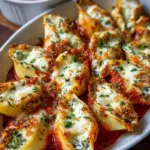 Comforting stuffed shells filled with creamy ricotta and Parmesan, topped with bubbling mozzarella and rich marinara sauce.