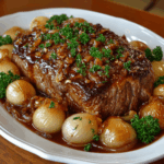 Swabian Roast Beef with Onions is a traditional German dish that features tender beef slow-cooked with onions, creating a rich and flavorful meal.