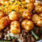 A hearty and comforting casserole featuring crispy Tater Tots, savory ground beef, and creamy green beans, perfect for family dinners and gatherings.