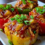 As you slice into these colorful peppers, the satisfying crunch of their skins gives way to a warm, flavorful filling that begs for another bite. The sweetness of pineapple accents the savory chicken, all enveloped in a slightly sticky, glossy sauce that clings deliciously to every component. With each forkful, you’ll encounter the soft tenderness of the perfectly seasoned chicken, the slight pop of the juicy pineapple chunks, and the subtle bite of garlic and onion, creating a medley of flavors that harmonize beautifully. The experience isn’t just about eating; it’s about indulging in a dish that encapsulates warmth and comfort, ideal for sharing with family or enjoying on a cozy weekday dinner.