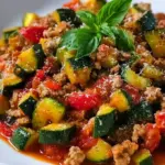 Imagine the crunch of freshly chopped bell peppers mingling with the tender softness of ripe zucchini, enhanced by the savory richness of ground turkey. The sound of vegetables sizzling against the hot skillet becomes a symphony of homey cuisine. Each forkful surprises the palate: the juicy tomatoes are a burst of flavor, while a sprinkle of Parmesan adds a layer of creamy texture that envelops you in pure bliss. Together, they create a medley that’s not just nourishing but irresistibly delightful.