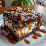 Once baked, remove the cake from the oven and let it cool slightly. This is the perfect time to prepare for the grand finale. Drizzle that luscious caramel sauce over the top, letting it cascade down the sides. It’s like a sweet waterfall of goodness that makes this Turtle Earthquake Sheet Cake truly irresistible!